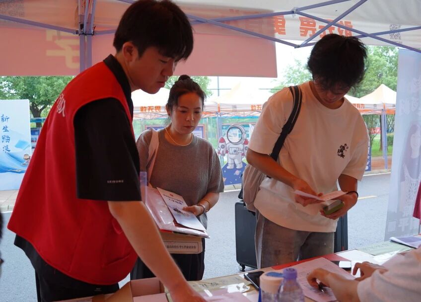 迎新伊始,校园里的志愿者们早早到位开始布置场地、调试设备,用细致准备,传递“商贸温度”。当载着新生的车辆缓缓驶入,迎新工作也正式开启。学长学姐们迅速行动,热情地帮忙拎行李、引导路线。从报到流程到校园生活,学长学姐们都细致地解答疑问。
