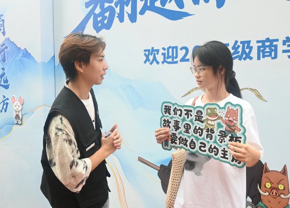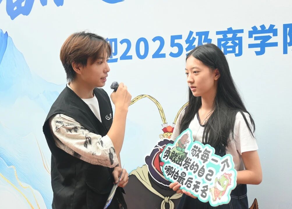 午后的校园,迎新热度丝毫不减。志愿者们顶着烈日,穿梭在校园各个角落,为新同学提供各种帮助。同时商学院还别出心裁,开展“青春初印象”特别采访,用镜头记录下新生初入校园的期待。