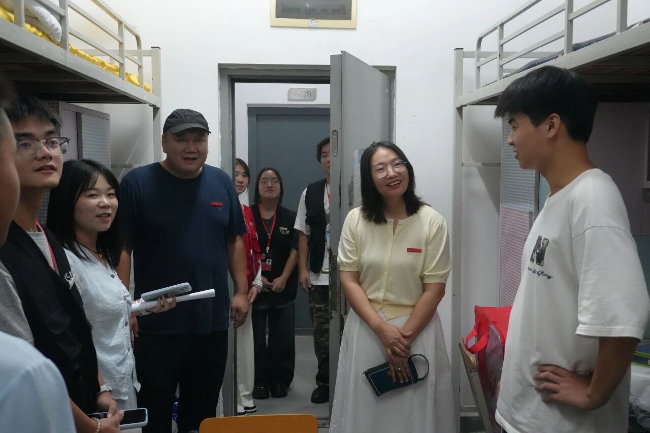 13日下午,商学院执行院长薛红松,党总支书记岳逸飞,团总支书记赵宇明,新生辅导员一行前往新生宿舍查寝。老师们与新生亲切交谈,查看宿舍设施,询问入住感受。薛红松院长叮嘱新生尽快适应大学生活,合理安排时间,兼顾学业与校园活动。岳逸飞书记强调宿舍安全,提醒注意用电、防火防盗,保持宿舍整洁和谐。赵宇明书记和新生辅导员也送上祝福,希望新生度过充实有意义的大学时光。