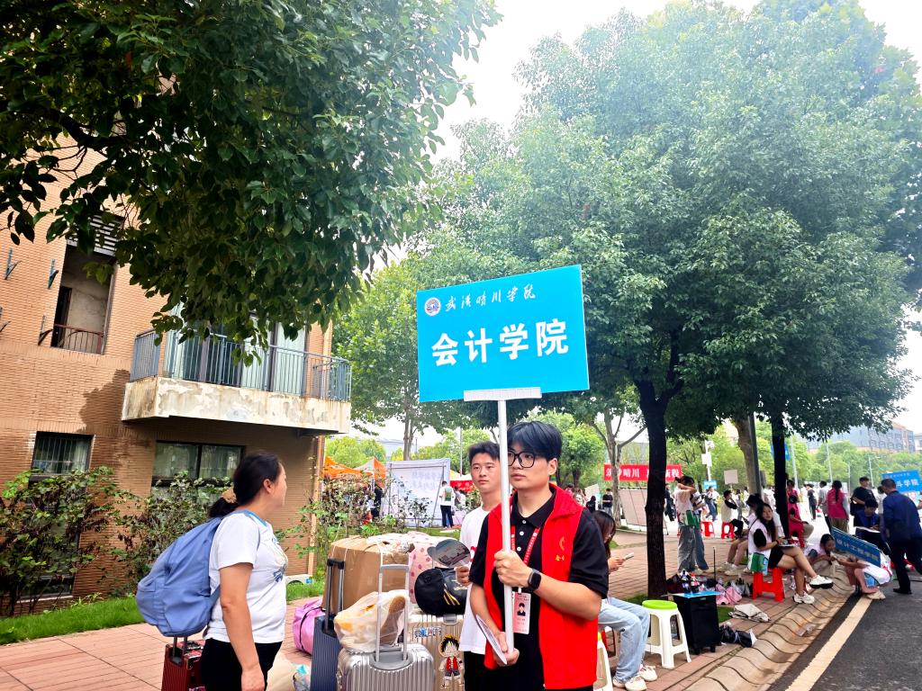 A学校环境很漂亮,学长学姐特别热情,迎新服务特别周到,学校的设施也很完善。