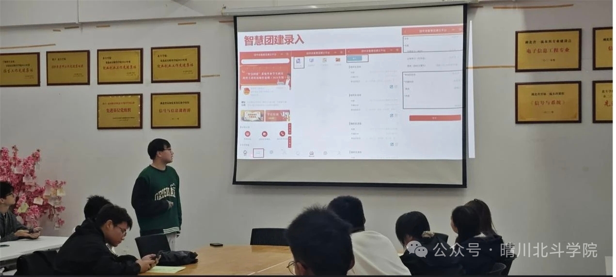 此外,培训会还对特色团日活动“单次记录表”填写及“智慧团建”云平台录入流程进行指导。强调记录表需统一字体、杜绝手写错误,明确支部名称(武汉晴川学院北斗学院XXX团支部)、活动主题、时间地点等信息,且地点需与活动照片匹配;照片需添加“X年X月X日 X点X分”水印,清晰呈现主持人、活动主题PPT封面及观众。“智慧团建”录入环节,则明确需按要求选择活动类型(如团课、主题团日、组织生活会)、专题(如“学习习近平总书记重要回信精神”“国家安全 青春挺膺”),准确填写开展时间、地点、参与团员名单及30-500字活动内容,确保团务工作线上线下数据一致、规范可查。