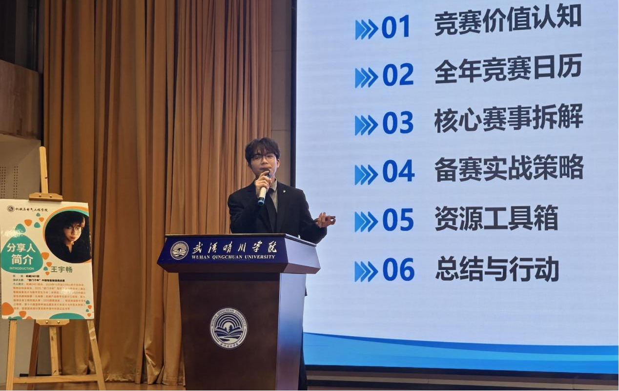 刚退去“新生”身份,确已经斩获几项国奖省奖的王宇畅,从竞赛经历的角度,为新生展示了另一种成长路径。他分享了自己在学习中的攻坚克难过程,如何与好友协作解决问题,以及在比赛中坚持到底的经历。王宇畅强调,比赛不仅是技能的较量,更是心态的比拼。他详细介绍了后续可参与的专业相关比赛,包括蓝桥杯、电工杯、大学生数学建模大赛等,鼓励同学们积极参与其中。