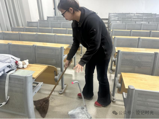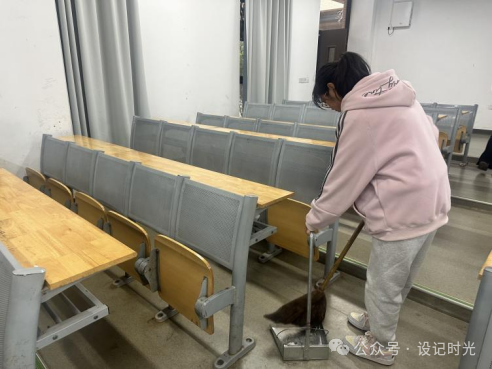 为解决同学们课后“教室积尘难清理、抽屉杂物碍使用”的小难题,设计工程学院的同学们主动化身志愿者,在教1-108教室开展“清洁课堂暖同学”志愿服务,用清扫地板、擦洗黑板等行动,把便利送到同学身边。
