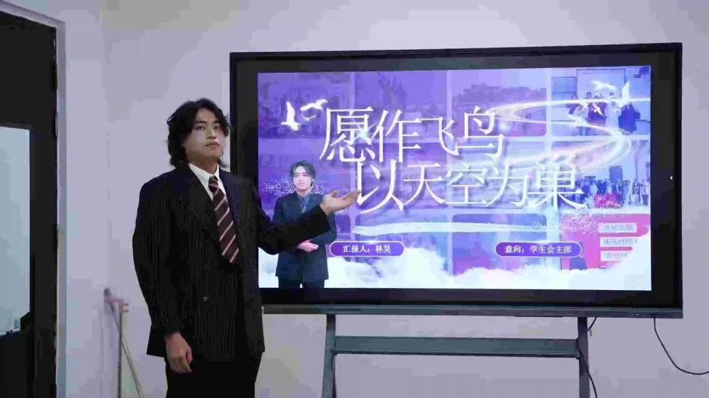 接着上场的是廖茜同学,她以“共开新篇,同赴新程”为目标,聚焦“常规工作具体化、活动形式创新化”,立志以服务倾听同学需求,优化活动形式,推出更亮眼的活动。接着上场的是杨茹嫣同学,她表示要将热爱转化为服务热情,强调“团队力量大于个人”以及要把“同学需求放在第一位”作为工作底色,尽显温暖与责任。随后上场的是潘望娣同学,她着眼“学生反馈畅通”与“内部破冰”,以热情与责任为底色,立志搭建更高效的服务桥梁。