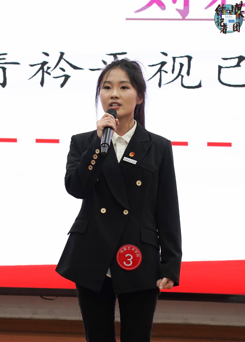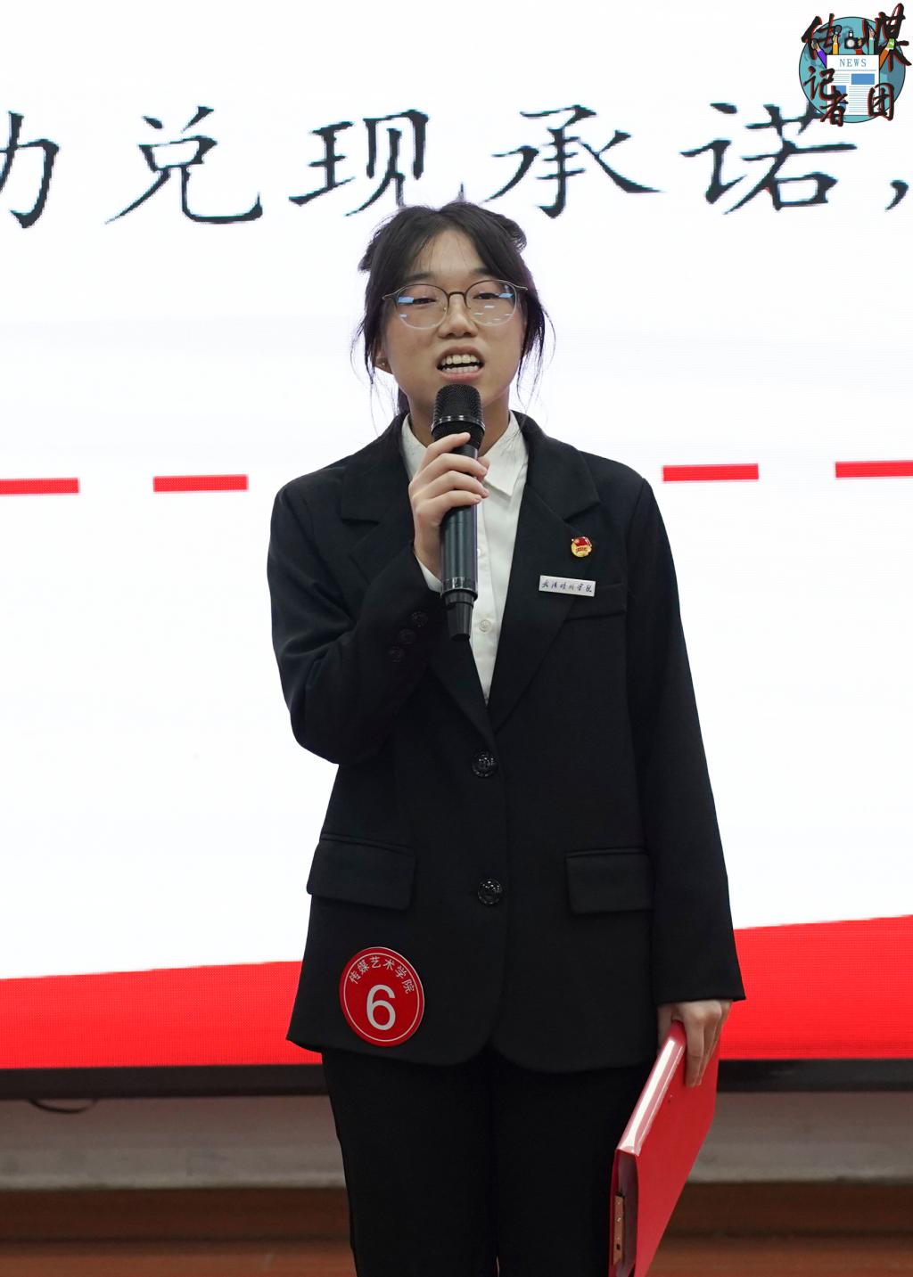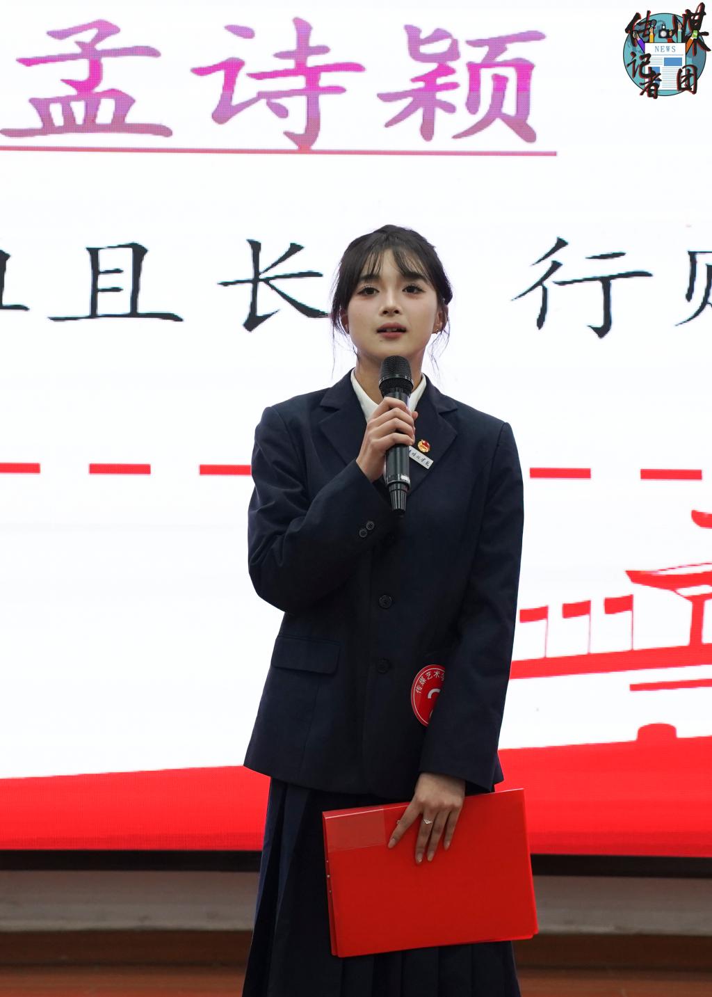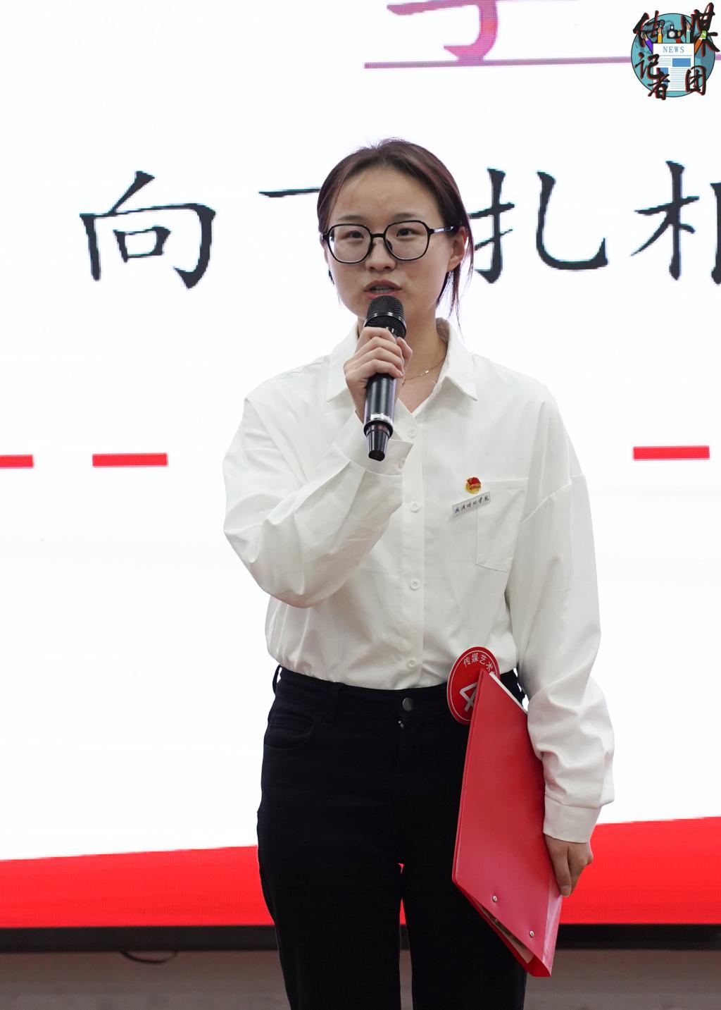 校学生会主席团成员范冰冰代表校团委致辞。她对传媒艺术学院学生会过去一年的工作进行了总结。针对下一阶段工作,她提出“五个方向”,即筑牢思想根基、深耕学业本领、厚植服务初心、严抓组织建设和凝聚院校合力,期待与各学院学生会秉持“一盘棋”的思想,深度合作、携手共进。