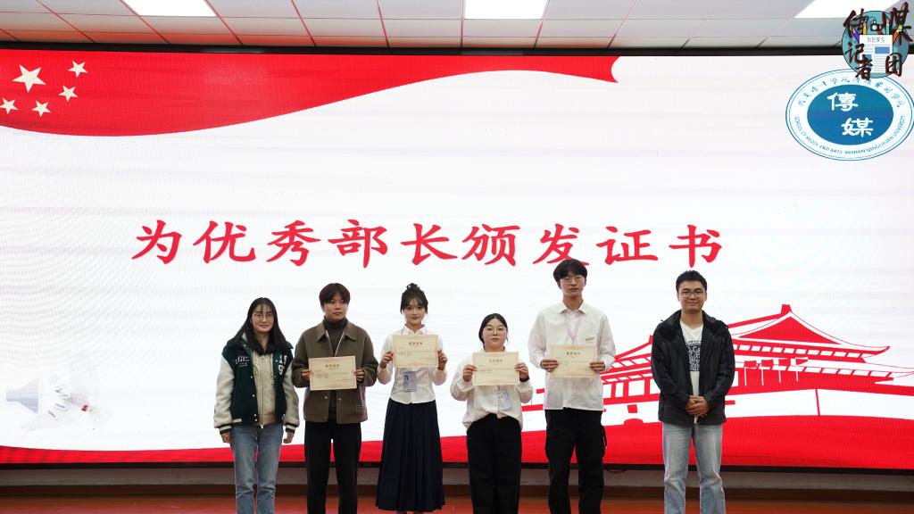 由辅导员徐融老师和方佳伟老师为优秀部长颁发证书。