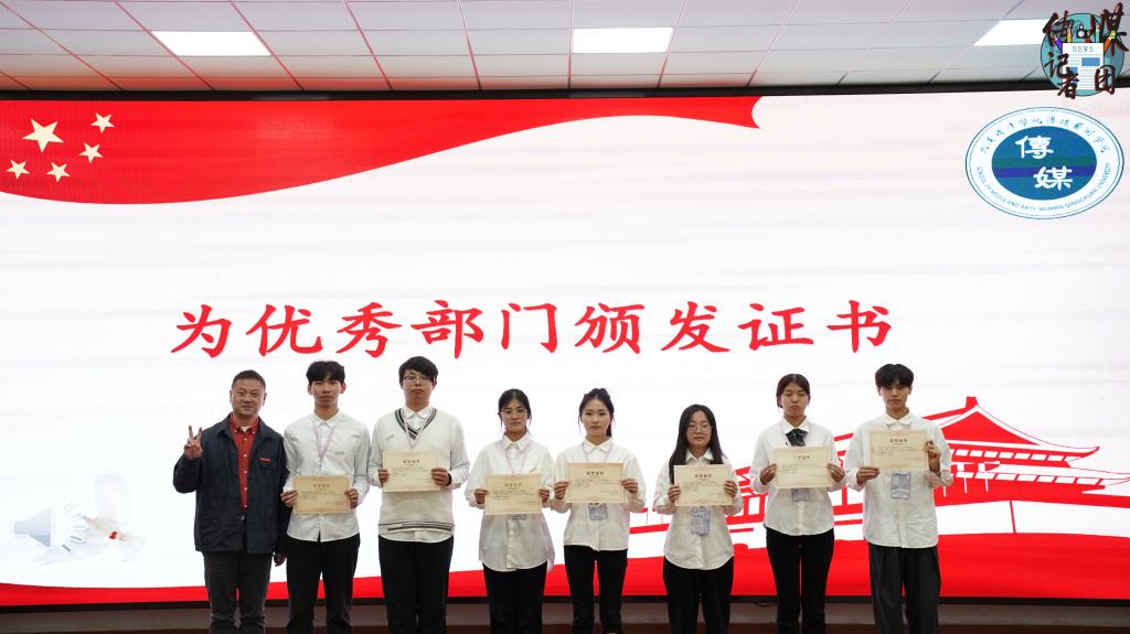 由传媒艺术学院党总支书记赵锐老师为优秀部门颁发证书。