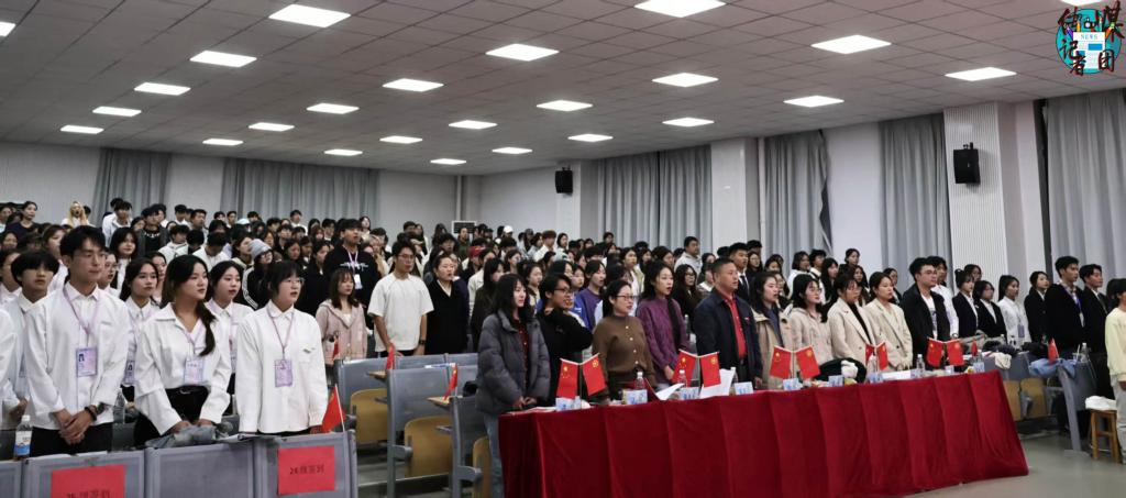 同时,现场还播放了以“何为青年”与“新中国”为主题的宣传视频,旨在引导同学们深刻理解青年使命,自觉肩负时代责任,为中华民族伟大复兴贡献青春力量!