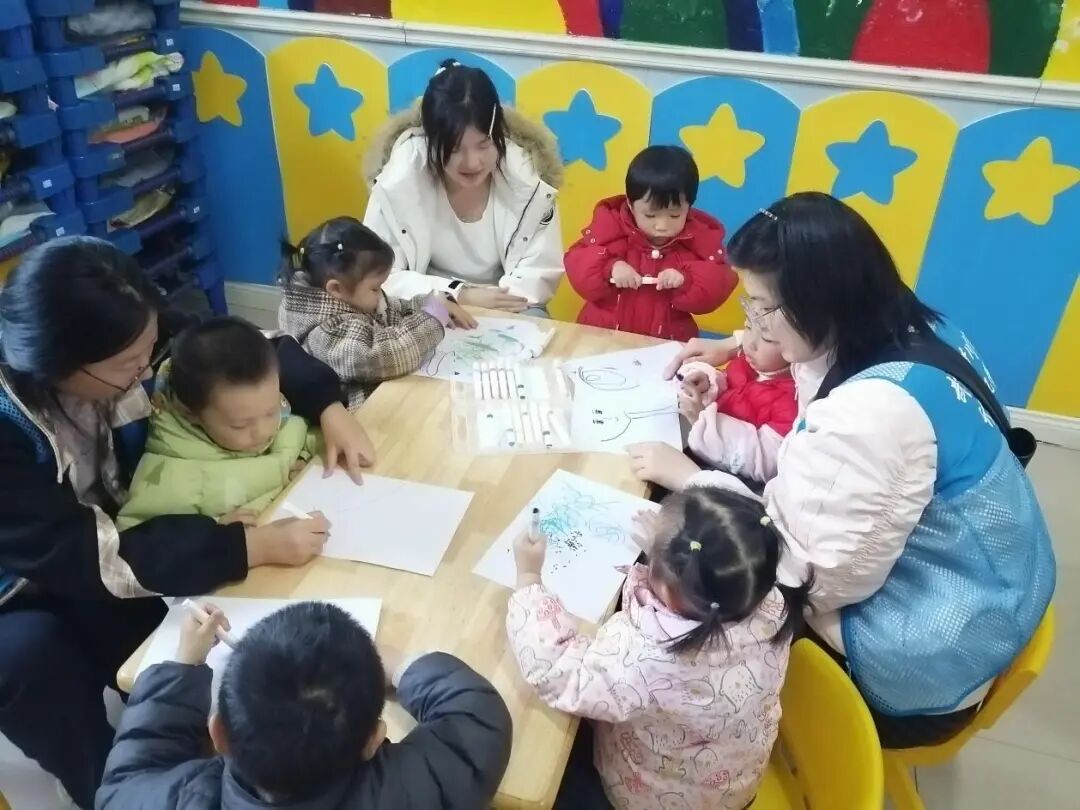 小班的活动则充满创意与温情。“绘制全家福” 环节中,志愿者们耐心引导,协助孩子们用画笔勾勒家庭的温暖模样,鼓励胆小的小朋友大胆创作;“你画我猜” 游戏里,孩子们分组协作,绘画者认真勾勒,猜题者踊跃抢答,志愿者们适时帮忙递材料、做提示,每一张稚嫩的画作都藏着无限想象力,每一次成功猜中都伴随着欢呼与掌声。