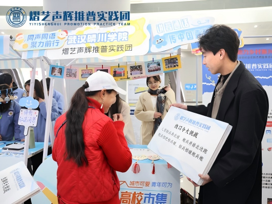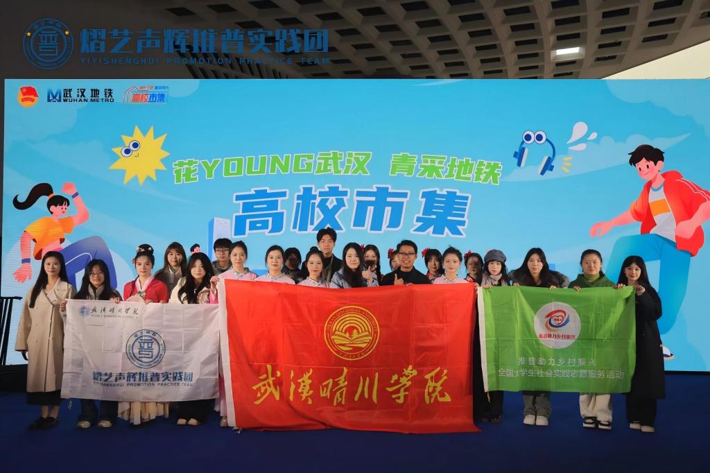12月5日,武汉地铁2/11号线光谷广场站环形站厅热闹非凡,由武汉地铁集团主办的“花young武汉,青彩地铁”高校市集活动在此温情启幕。武汉晴川学院熠艺声辉志愿服务工作站受邀出席,由校团委陈江南老师和志愿服务工作站负责人王凯老师带队,以语言为媒、以文化为核,在人流涌动的地铁空间里,为市民游客带来了一场兼具趣味与内涵的推普文化盛宴。