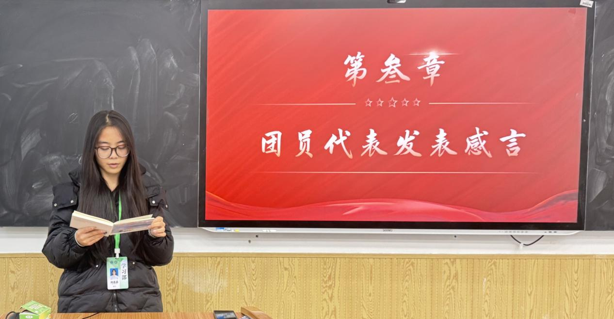 在团员代表感言环节,学习部部长周蕊蕊结合自身经历,分享了对全会精神的感悟与实践规划。她坦言过往工作中曾存在“理论落地不足”的困惑,而此次学习让她明晰了努力方向:“未来我会主动参与更多实践活动,在校园文化活动中传承红色基因,用实际行动回应时代召唤。”真挚的分享引发全场共鸣,现场多次响起自发掌声,形成了“一人分享、全员共勉、以点带面、共同进步”的良好氛围。