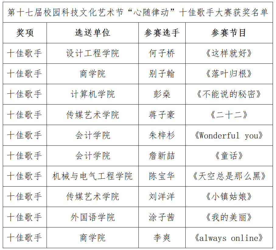 (“心随律动”十佳歌手)